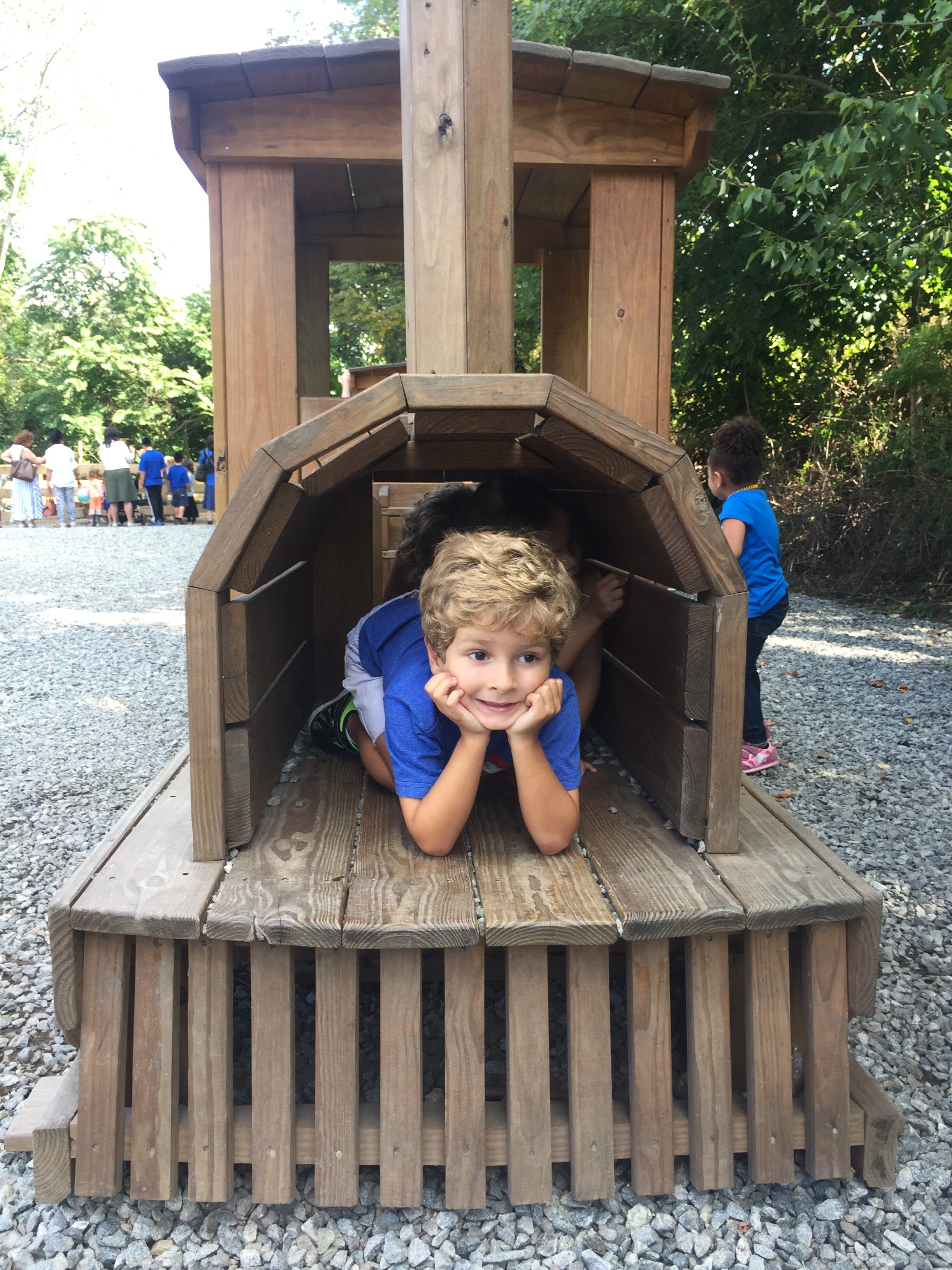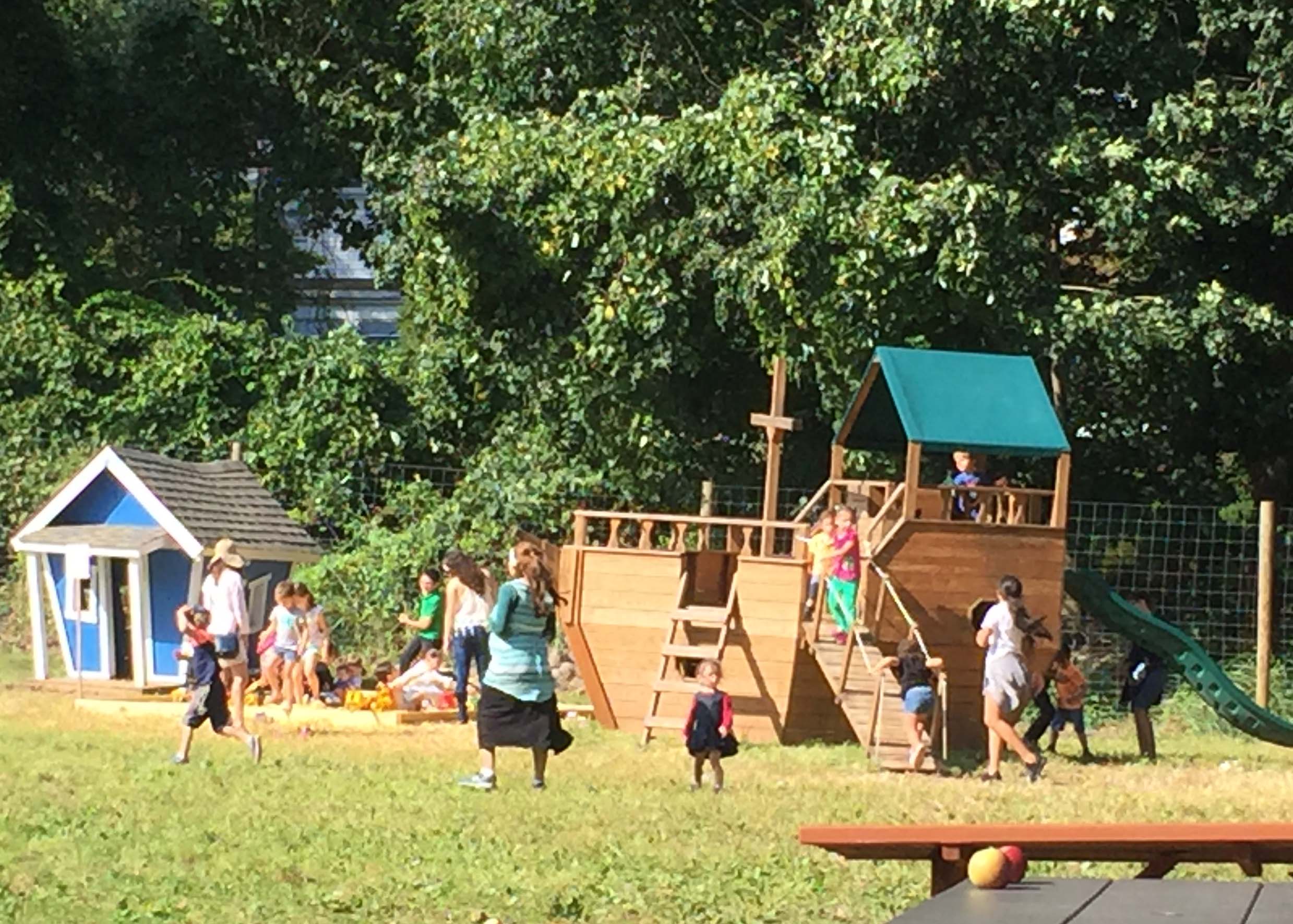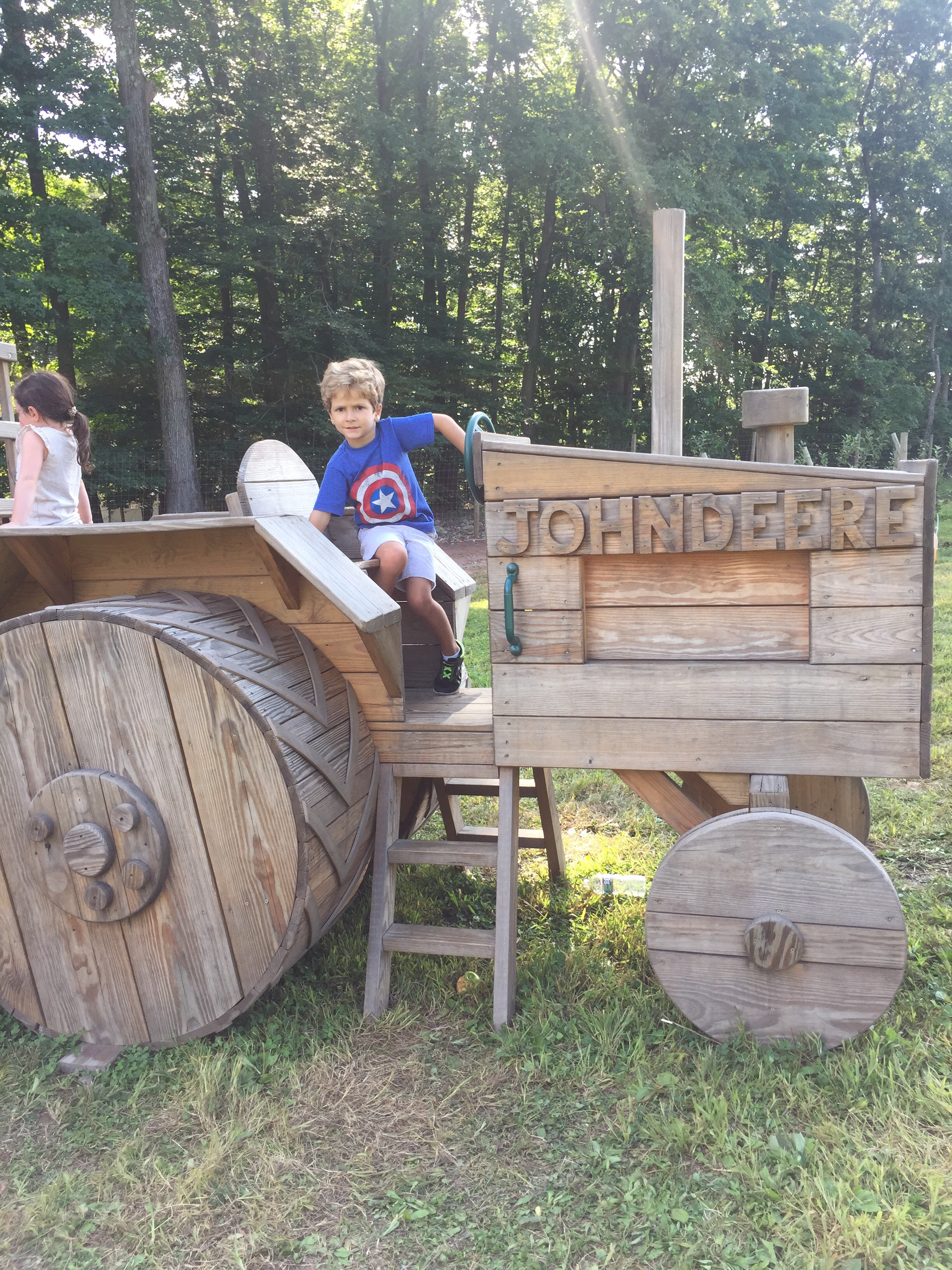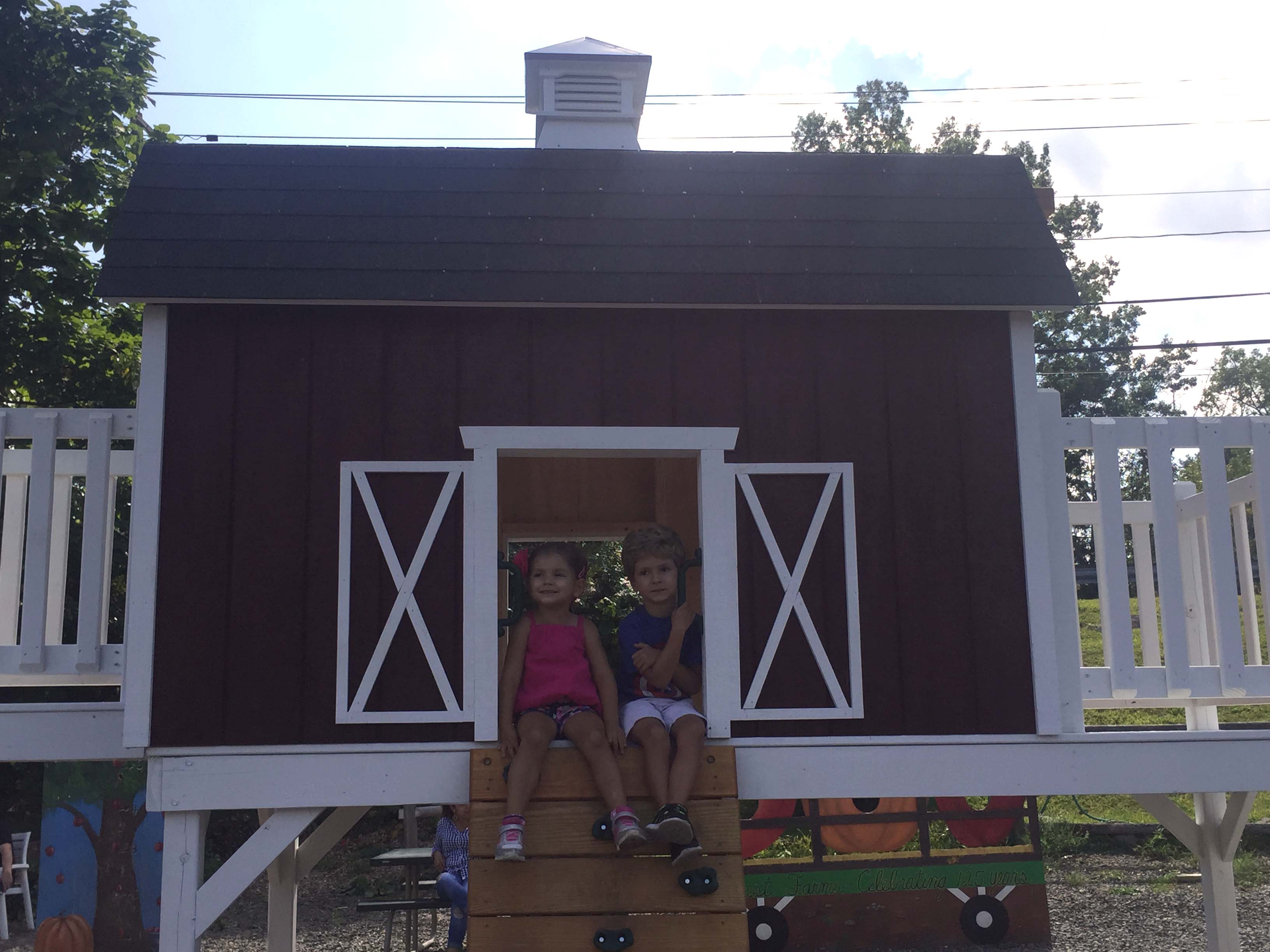 4 – Multiple play areas for the kids: The first play area is next to the farm store. Kids can play while parents purchase hay ride tickets and apple picking bags. The second play area is at the top of the hill near the apple orchard. There are slides, wooden trains, a pirate ship, and a corn kernel pit.