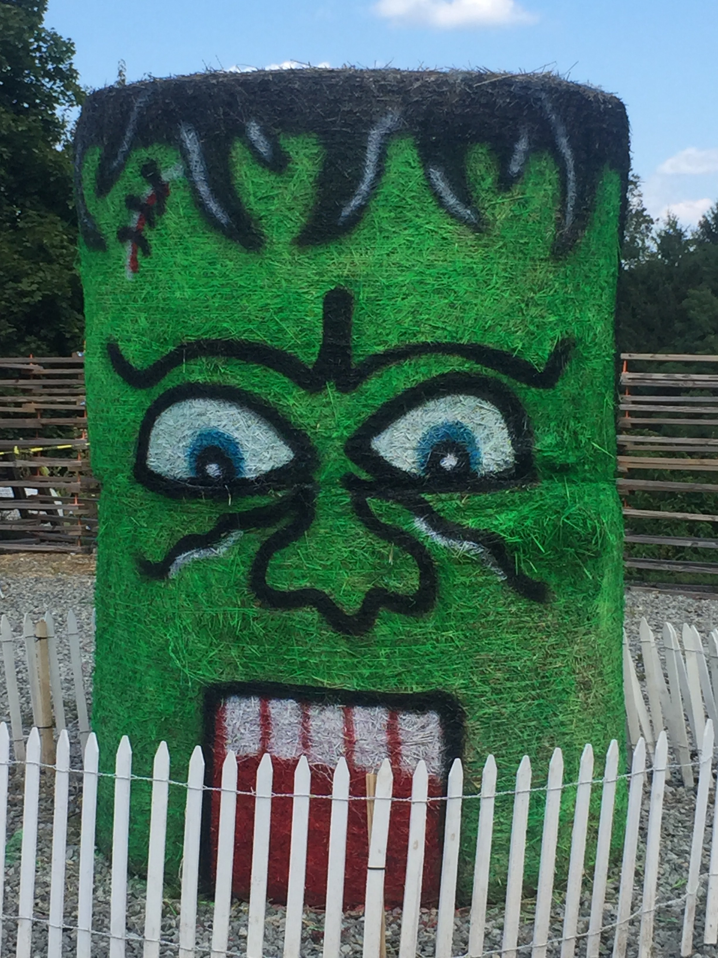 7 – Halloween photo props: They have large hay bales painted with jack-o-latern and frankenstein faces. Keep an eye out for the Minion hay bale stack on your way up the hill. There are also several fun wooden Halloween-themed photo props.