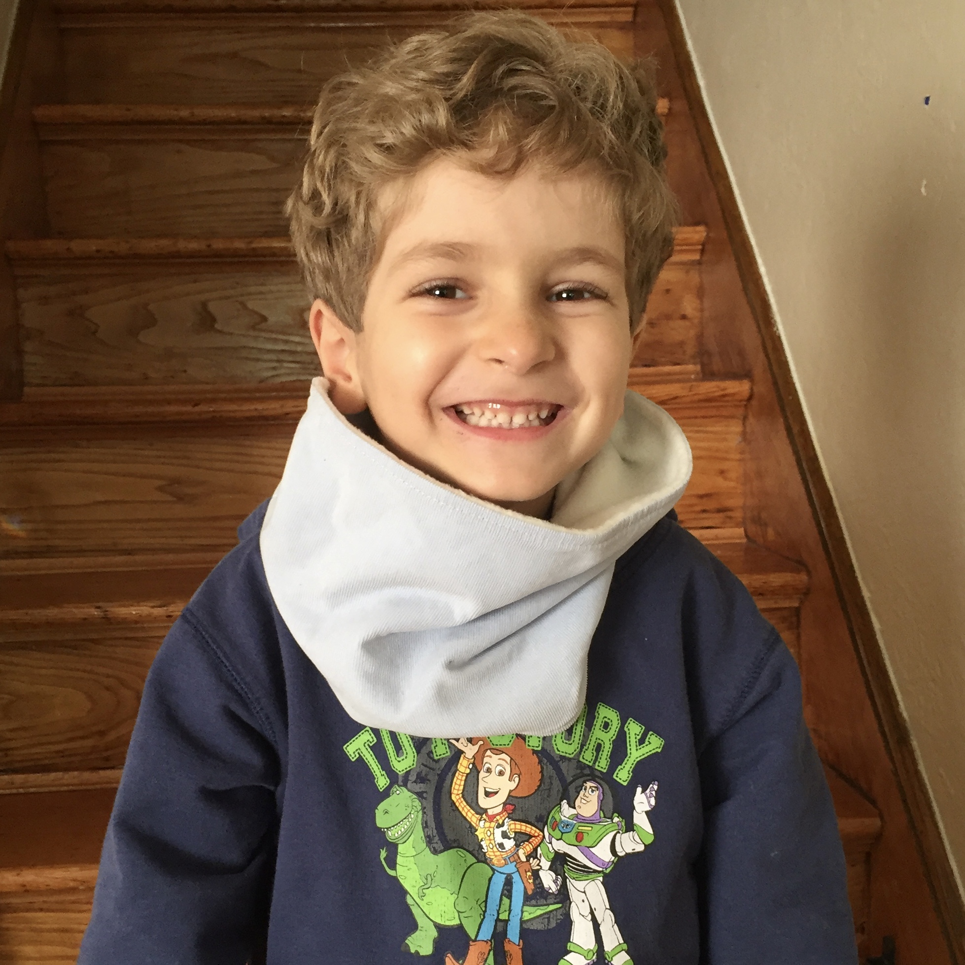 When Lucas was a toddler, keeping a traditional tied scarf on him was a challenge. It would come undone. He would be uncomfortable because the scarf was too long and bulky. I was looking for a solution when I came across an easy knit pattern for a child neck warmer cowl scarf. I haven’t purchased a traditional scarf since knitting my first neck warmer cowl scarf. This week, we had a Snow Day and I was inspired to make new scarves using Corduroy and Sherpa I had in my fabric stash. Try these two neck warmer cowl scarf DIY projects. They are good for beginner knitters and sewers.